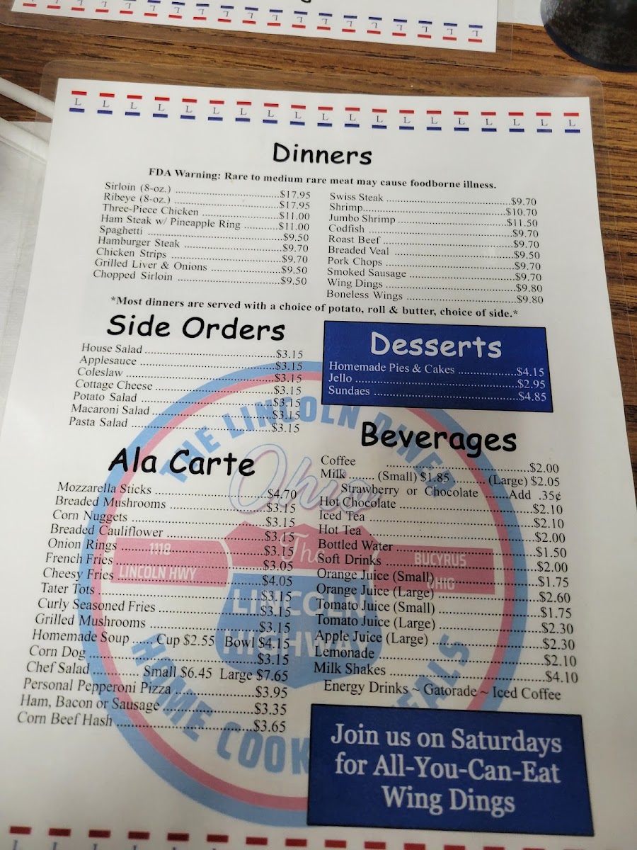 Additional menu highlights include a selection of sandwiches and specialty items like Swiss Onion Burger, Wing Dings, and homemade soup. The restaurant also offers an all-you-can-eat fish option on Fridays, featuring Alaskan Pollock, which is a notable feature for those looking for seafood dining.