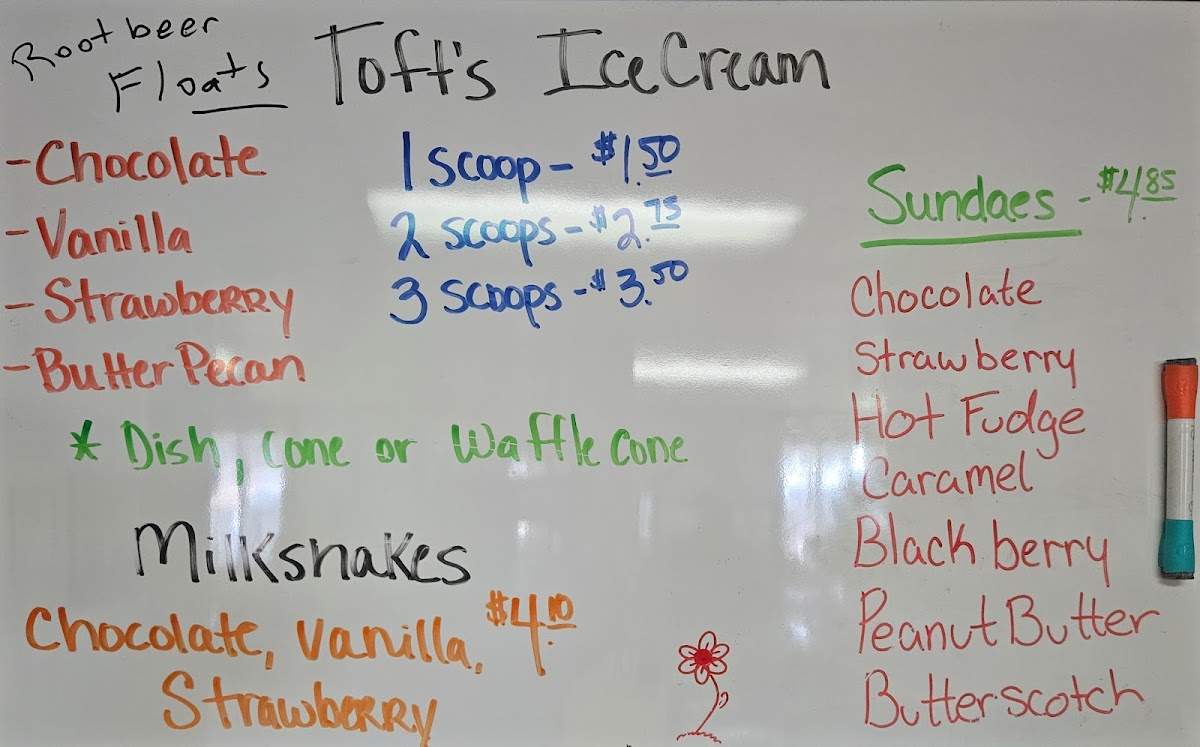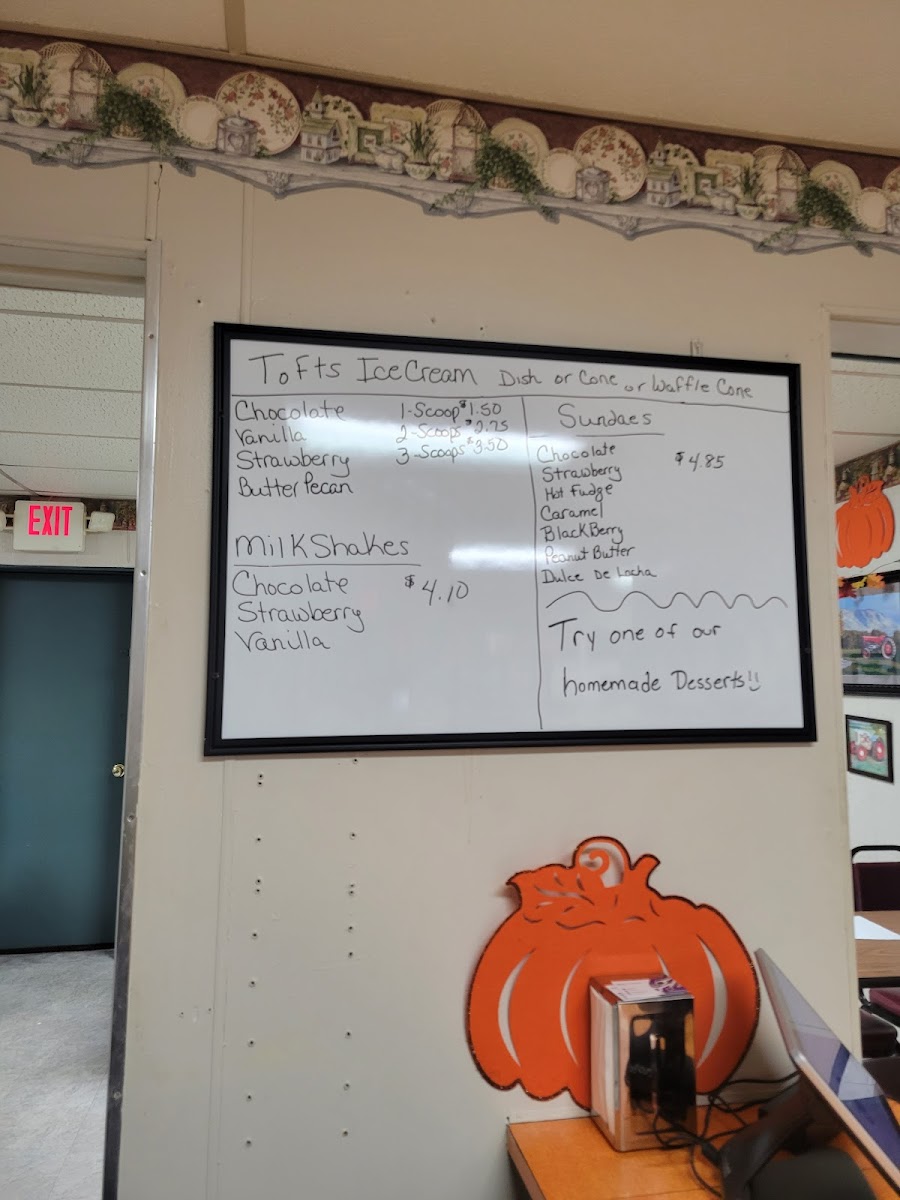 Main courses are primarily presented in the form of dinners featuring proteins such as jumbo shrimp, Swiss steak, smoked sausage, and chicken strips. These dinners come with a choice of two sides and a dinner roll, providing a full meal option. Sides available include mashed potatoes with brown gravy, fresh cut fries, baked potatoes, fried potatoes, vegetables, and macaroni and cheese, which can also be ordered separately.